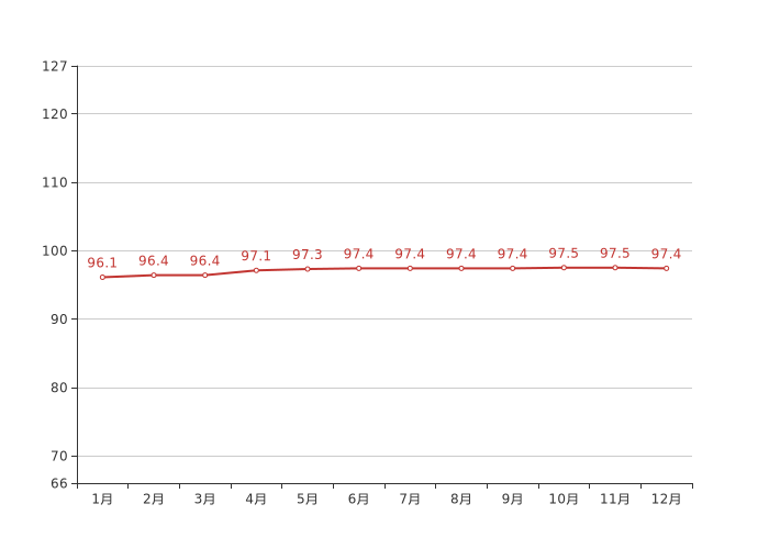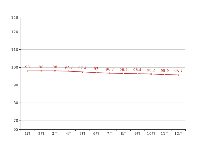 图2 2023年12月70个大中城市二手住宅销售价格指数