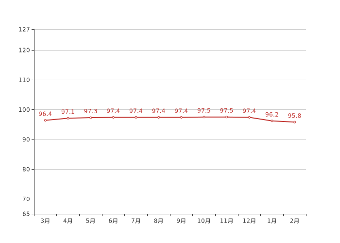 图2 2024年2月70个大中城市二手住宅销售价格指数