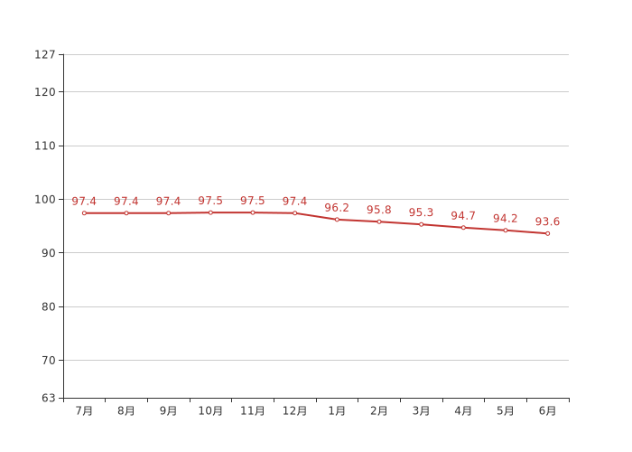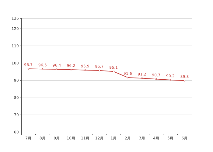 图2 2024年6月70个大中城市二手住宅销售价格指数